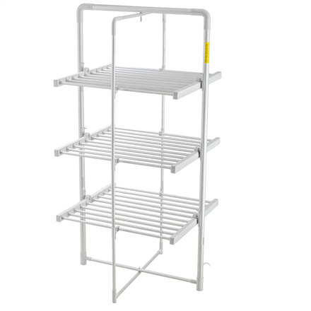 | Kitos savybės | Dual Functionality: Can be used both as a heated dryer or as a standard drying rack with no power required; Space-Saving Design: Perfect for apartments and small spaces - folds flat to only 9 cm thickness; Fast Drying: 30 aluminum heating elements significantly reduce drying time compared to air-drying; Durable - Lightweight: Made from lightweight aluminum and solid plastic; easy to move and set up; Floor-Friendly: Non-slip plastic feet protect your floors from scratches and damage. |