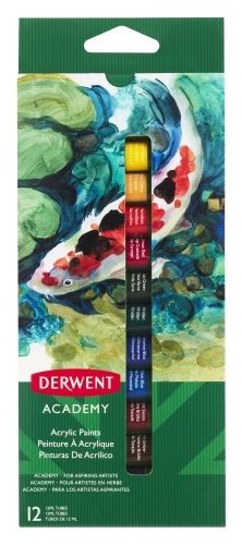 "Derwent Academy akriliniai dažai yra pagaminti iš sodrių pigmentų ir kompozicijos, kuri išlaiko atspalvį, spalvos gyvybingumą ir konsistenciją, nesvarbu, ar naudojama atskirai, ar sumaišyta su kitomis tapybos priemonėmis.