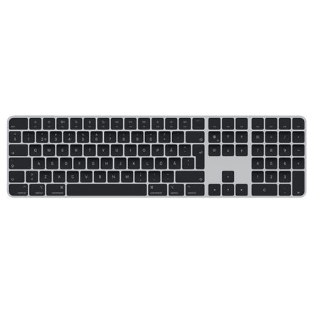 | Kitos savybės | Magic Keyboard with Touch ID and Numeric Keypad delivers a remarkably comfortable and precise typing experience. It features an extended layout, with document navigation controls for quick scrolling and full-size arrow keys, which are great for gaming. The numeric keypad is also ideal for spreadsheets and finance applications. It’s wireless and features a rechargeable battery that will power your keyboard for about a month or more between charges.¹ It pairs automatically with your Mac, so you can get to work straightaway. And it includes a woven USB-C to Lightning Cable that lets you pair and charge by connecting to a USB-C port on your Mac. |