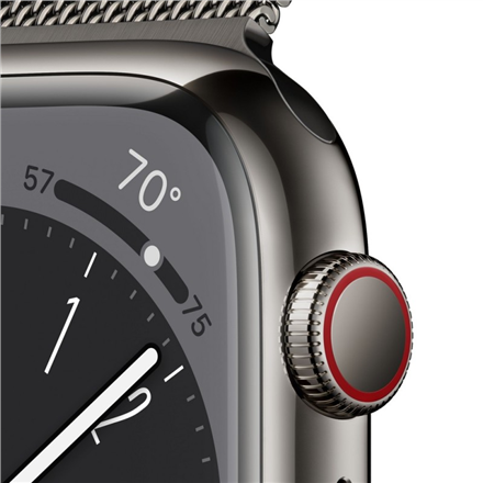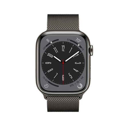 Apple Watch Series 8 MNKX3UL/A 45mm, Smart watches, GPS (satellite), Retina LTPO OLED, Touchscreen, Heart rate monitor, Waterproof, Bluetooth, Wi-Fi, eSIM, Graphite, Graphite