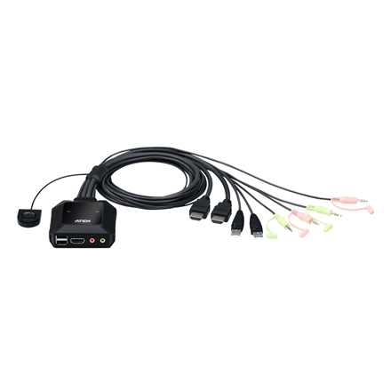 Aten 2-Port USB 4K HDMI Cable KVM Switch with Remote Port Selector CS22H-AT