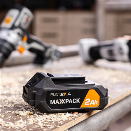 | Kitos savybės | Versatile Compatibility - Works with over 50 tools from the Maxxpack 18V collection, simplifying your tool system; Compact & Lightweight Battery - The 2.0Ah Li-ion battery offers long-lasting power without self-discharge or memory effect; Built-in Charge Level Indicator - Easily monitor your battery status to avoid interruptions; Fast & Efficient Charging - The 2.4A charger powers up the 2.0Ah battery in just 50 minutes, keeping you working without long wait times |