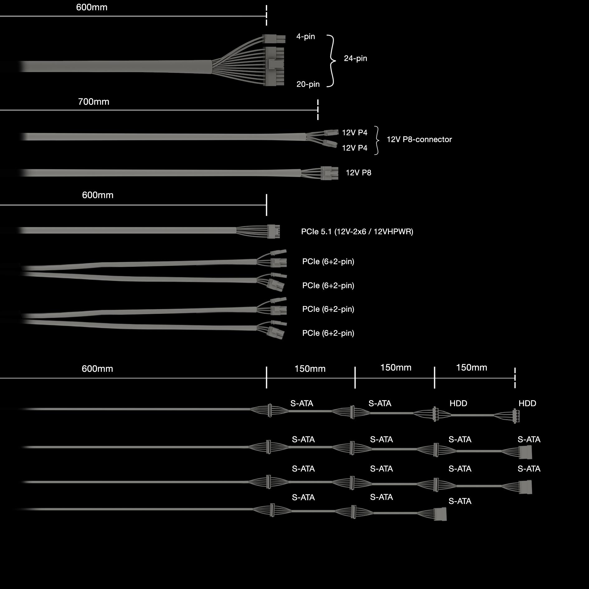 be quiet! Dark Power 14 1000 W - 80 Plus Titanium. Total power: 1000 W, AC input voltage: 100 - 240 V, Peak power: 1100 W. Motherboard power connector: 20+4 pin ATX, Motherboard power cable length: 60 cm, SATA power cable length: 600,750,900,1050 mm. Purpose: PC, Power supply unit (PSU) form factor: ATX, 80 PLUS certification: 80 PLUS Titanium. Product colour: Black, Cooling type: Active, Fan diameter: 13.5 cm. Compliance certificates: CB, Federal Communications Commission (FCC), RoHS, TÜV mark, UKCA, WEEE, cTUVus