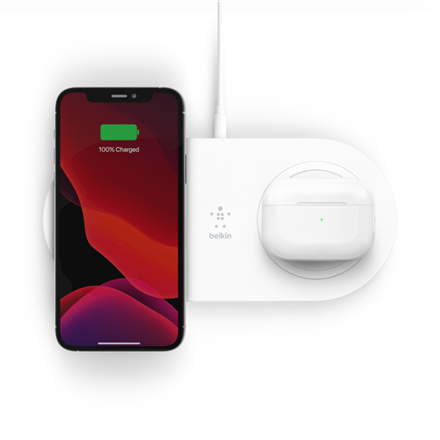 | Specialios funkcijos | Two-in-one wireless charging solution; Fast wireless charging up to 15W; Charges through most lightweight cases; Qi-certified for safety Non-slip grip ensures your phone stays in place |