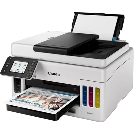 Canon Inkjet printer IJ MFP GX5050 EUR Color Inkjet yra aukštos kokybės spausdintuvas, kuris puikiai tiks tiek namų, tiek biuro aplinkai. Spausdintuvas gali išspausti aukštos raiškos spalvotus dokumentus formate A4. Be to, jis turi belaidį ryšį Wi-Fi, kuris leidžia patogiai prisijungti ir spausdinti bevieliu būdu.