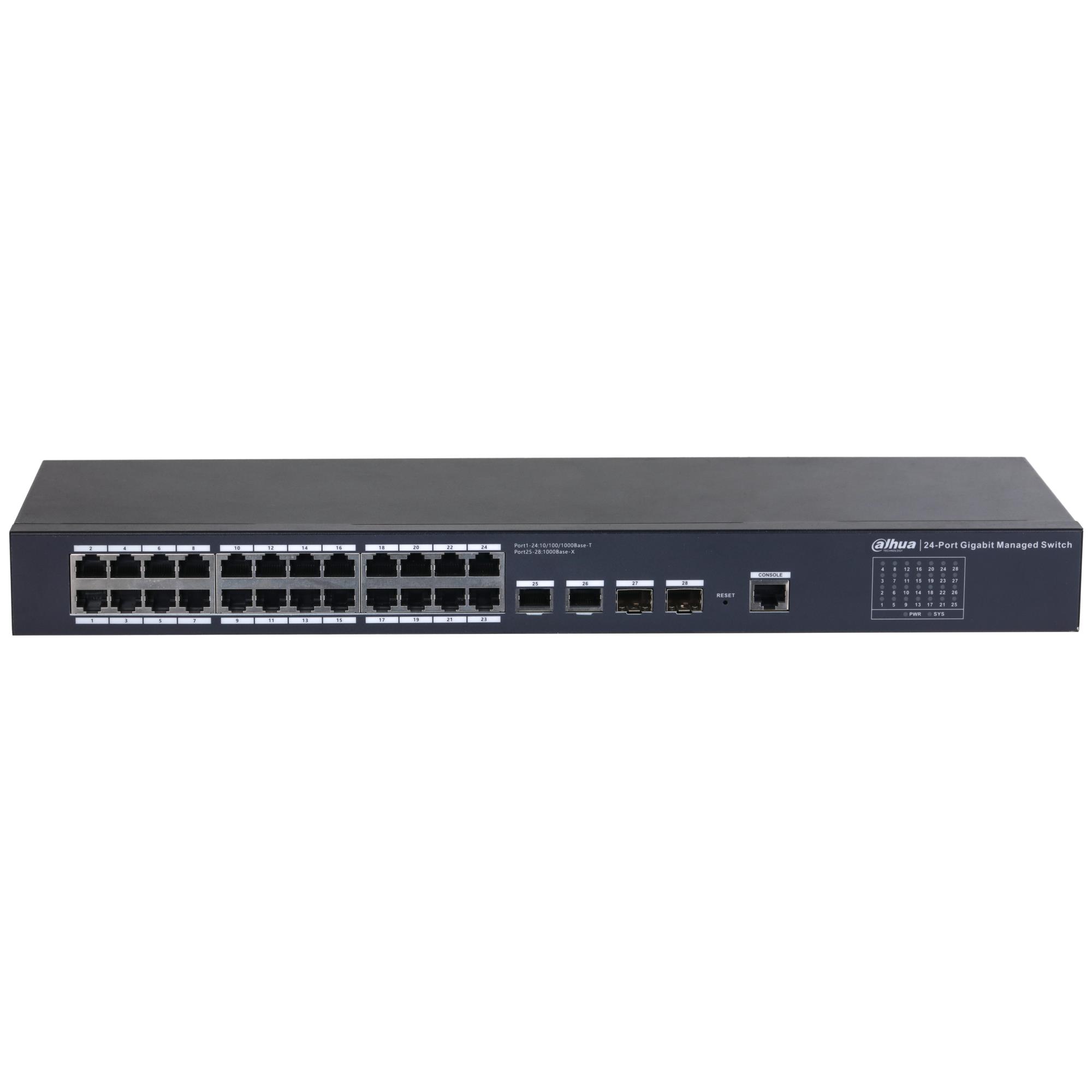 SummaryDahua Technology SG4028. Switch type: Managed, Switch layer: L2. Basic switching RJ-45 Ethernet ports type: Gigabit Ethernet (10/100/1000), Basic switching RJ-45 Ethernet ports quantity: 26, Console port: RJ-45. Full duplex. MAC address table: 8000 entries, Switching capacity: 56 Gbit/s. Networking standards: IEEE 802.1x, IEEE 802.3x. DC input voltage: 12 V. Rack mounting