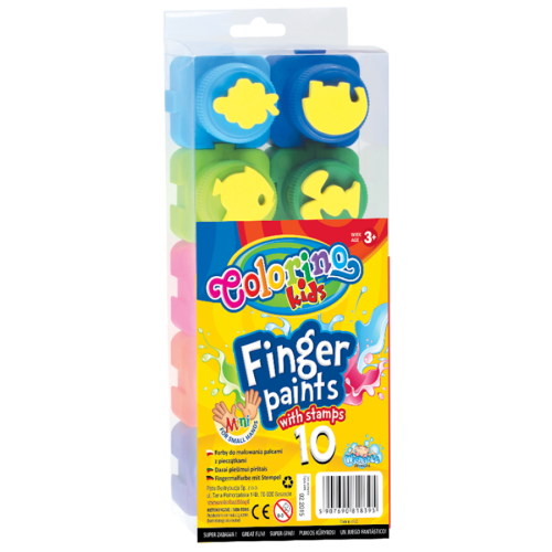 10 spalvų dažai piešimui pirštais su antspaudais. Idealiai tinka mažiems vaikams, kurie tik pradeda savo nuotykius su tapyba. Jums nereikia teptukų ar vandens. Gelio konsistencija leidžia lengvai tepti. Dažai yra saugūs jūsų odai. Nusiplauna vandeniu. Kiekvienas antspaudas yra skirtingas!