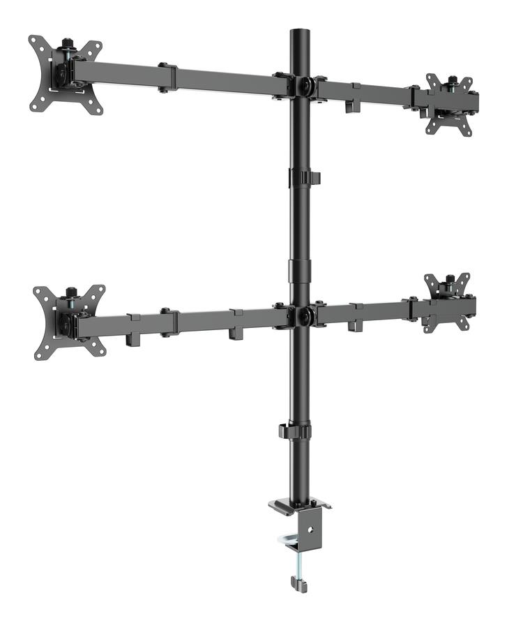 Gembird MA-D4-01. Mounting: Clamp, Maximum weight capacity: 40 kg, Minimum screen size: 33 cm (13"), Maximum screen size: 81.3 cm (32"), Minimum VESA mount: 75 x 75 mm, Maximum VESA mount: 100 x 100 mm. Swivel angle range: 90 - -90°, Tilt angle range: 45 - -45°. Product colour: Black