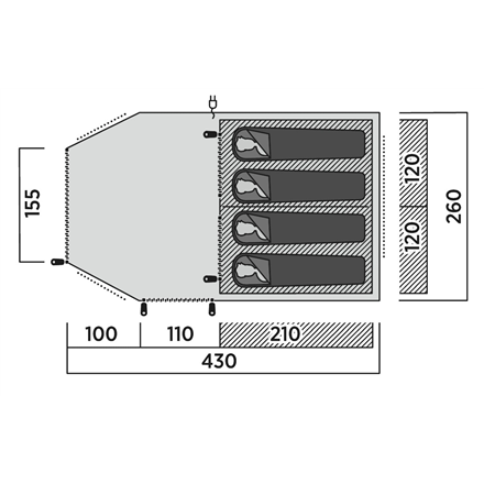 | Flysheet | WeatherGuard 3000, 190T polyester PU coated, PFC free water repellency, fire retardant |