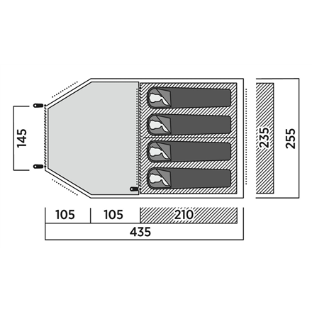 | Flysheet | WeatherGuard 3000, 190T polyester PU coated, PFC free water repellency, fire retardant |