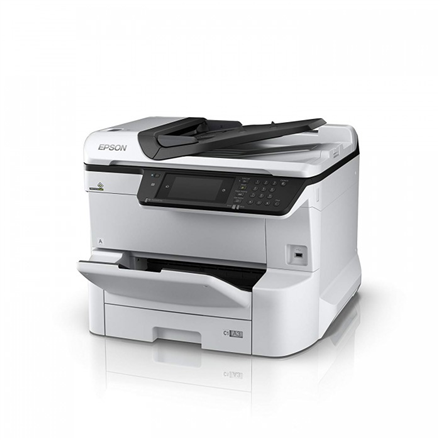 "Epson Multifunctional printer WF-C8610DWF Colour" - tai aukštos kokybės daugiafunkcis printeris, sukurtas Jūsų kompanijai sutaupyti tiek laserdinčio, tiek darbo sąnaudų. Šis prietaisas gali spausdinti spalvotus A3 formato dokumentus, idealus prezentacijų, plakatų ar kitų didelio formato dokumentų spausdinimui. Printeris turi Wi-Fi jungtį, todėl galite spausdinti dokumentus tiesiai iš savo mobilaus įrenginio.