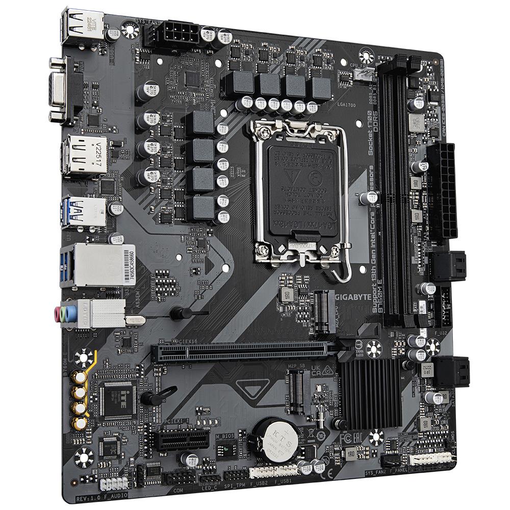 GIGABYTE B760M E Motherboard - Supports 14th Gen. Intel Core CPUs, 6+1+1 phases VRM, up to 7200MHz DDR5 (OC), 2xPCIe 4.0 M.2, 1 GbE LAN, USB 3.2 Gen 1. Processor manufacturer: Intel, Processor socket: LGA 1700, Compatible processor series: Intel® Celeron®, Intel Core i3 12th Gen, Intel Core i3 13th Gen, Intel Core i3 14th Gen, Intel.... Supported memory types: DDR5-SDRAM, Maximum internal memory: 128 GB, Memory slots type: DIMM. Supported storage drive interfaces: M.2, SATA III, Supported storage drive types: HDD & SSD, RAID levels: 0, 1, 5, 10. Maximum resolution: 4096 x 2160 pixels. Ethernet interface type: Gigabit Ethernet, LAN controller: Realtek RTL8111H