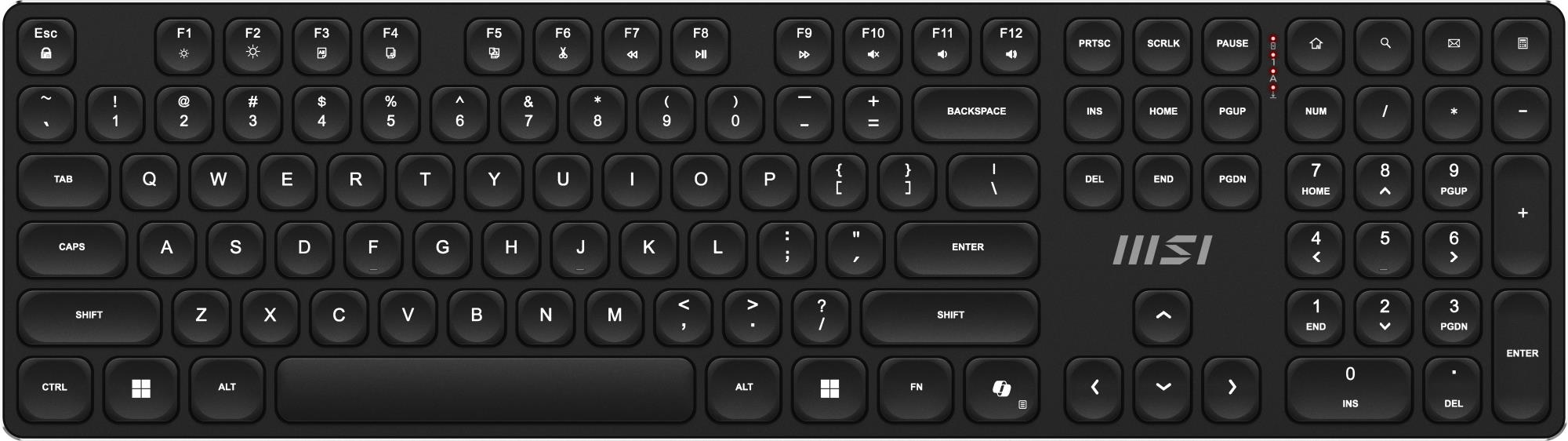 | Summary | MSI FORGE K210 WIRELESS COMBO. Keyboard form factor: Full-size (100%), Connectivity technology: Wireless, Device interface: USB, Keyboard key switch: Mechanical, Keyboard layout: QWERTY, Recommended usage: Home/Office. Product colour: Black. Mouse included |