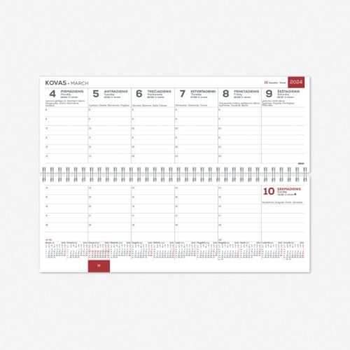 Horizontalus stalinis kalendorius, skirtas savaitės darbų bei susitikimų planavimui.