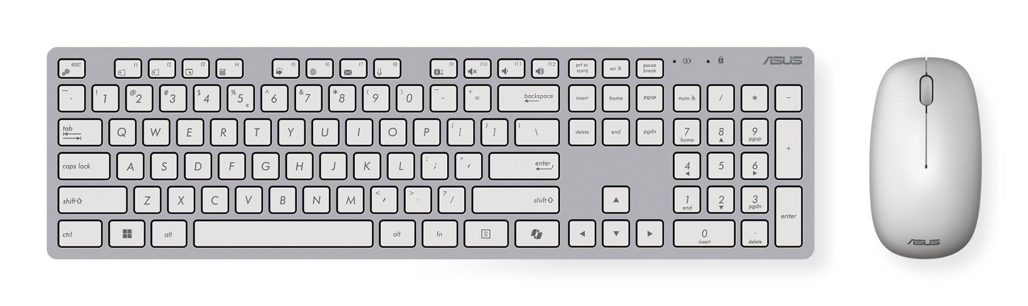 | Summary | ASUS W5000. Keyboard form factor: Full-size (100%). Keyboard style: Straight. Connectivity technology: Wireless, Device interface: RF Wireless, Recommended usage: Office. Product colour: White. Mouse included |