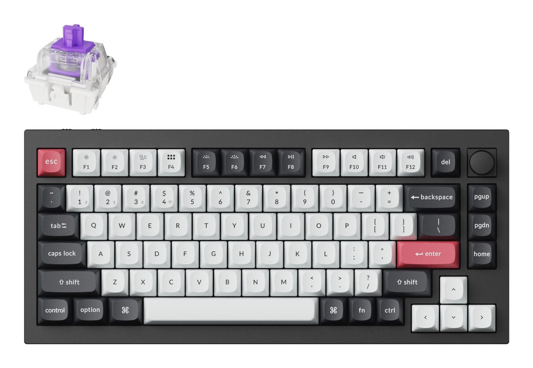 | Summary | Keychron Q1 HE. Keyboard form factor: 75%. Keyboard style: Straight. Connectivity technology: Wired & Wireless, Device interface: USB + RF Wireless + Bluetooth, Keyboard key switch: Magnetic-mechanical key switch. Backlight type: RGB LED. Cable length: 1.8 m. Recommended usage: Universal. Product colour: Black, Grey |