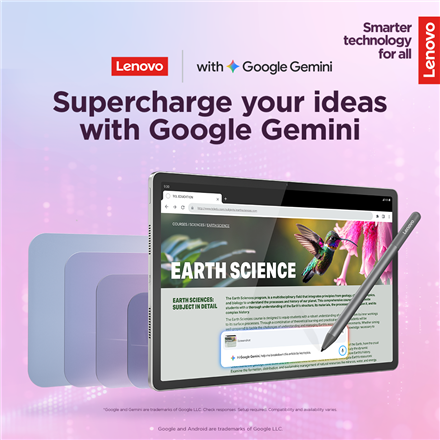 Lenovo Idea Tab Plus Wi-Fi (without power adapter) | ZAG70004SE | 12.1 " | Luna Grey | IPS | 2560 x 1600 pixels | MediaTek | Dimensity 6400 | 12 GB | Soldered LPDDR4x | 256 GB | Wi-Fi | Front camera | 8 MP | Rear camera | 13 MP | Bluetooth | 5.2 | Android | 15 or Later | Warranty 24 month(s) | Lenovo Tab Pen