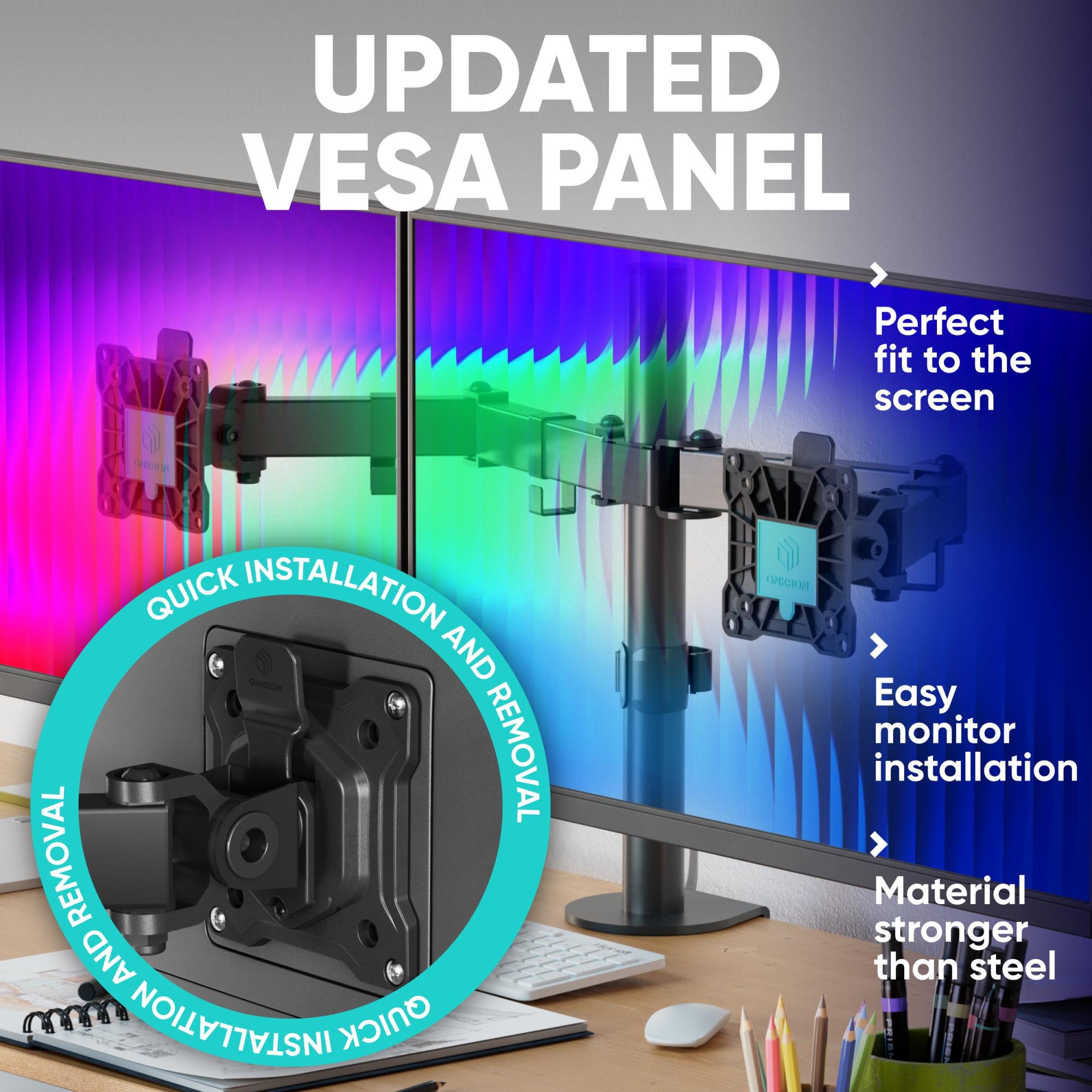 | Summary | ONKRON D221E-B. Mounting: Clamp/Grommet, Maximum weight capacity: 16 kg, Minimum screen size: 33 cm (13"), Maximum screen size: 81.3 cm (32"), Minimum VESA mount: 75 x 75 mm, Maximum VESA mount: 100 x 100 mm. Height adjustment, Tilt angle range: -45 - 45°. Product colour: Black |