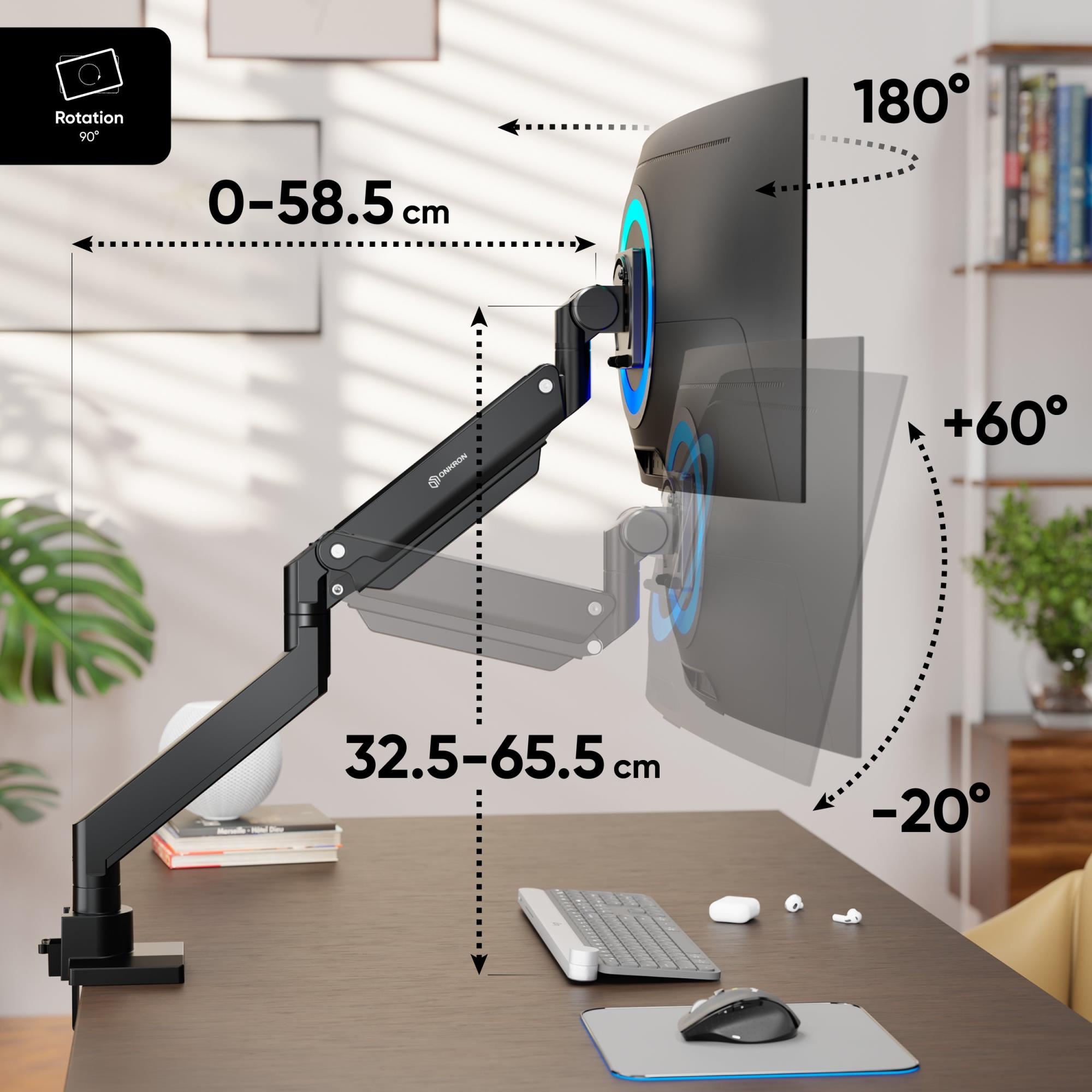 | Summary | ONKRON G130-B. Mounting: Clamp/Grommet, Maximum weight capacity: 27 kg, Minimum screen size: 43.2 cm (17"), Maximum screen size: 144.8 cm (57"), Minimum VESA mount: 75 x 75 mm, Maximum VESA mount: 200 x 200 mm. Height adjustment, Tilt angle range: -20 - 60°. Product colour: Black |