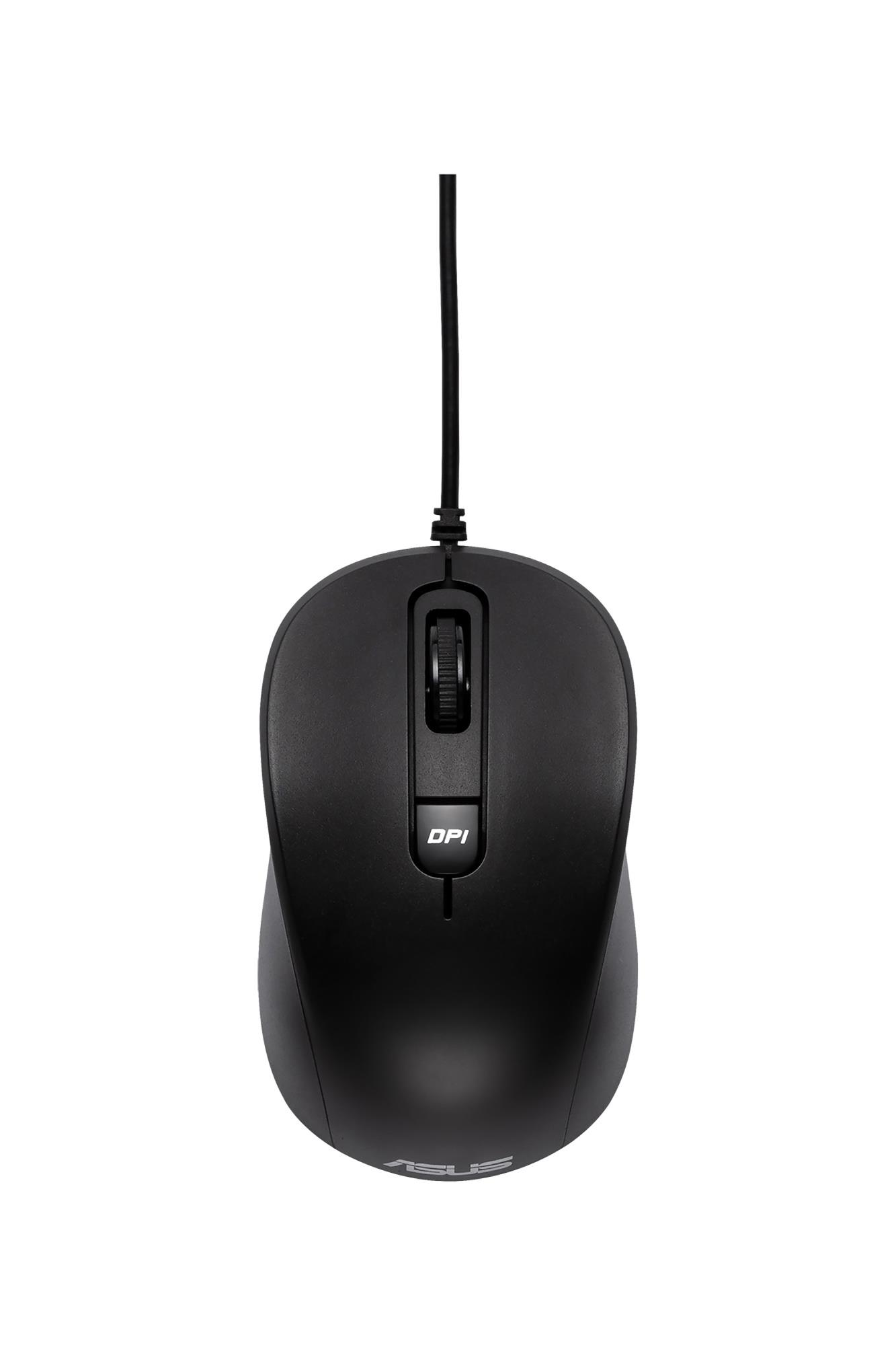 ASUS MU101C. Form factor: Ambidextrous. Movement detection technology: Optical, Device interface: USB Type-A, Movement resolution: 3200 DPI, Buttons type: Pressed buttons, Buttons quantity: 3, Scroll type: Wheel. Power source: Cable. Product colour: Black