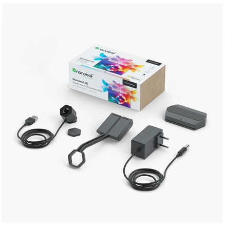 | Kitos savybės | Take your entertainment beyond the screen. Nanoleaf 4D is a screen mirror camera kit that syncs the colours on your screen onto the addressable gradient LED lightstrip mounted behind it. For a levelled-up entertainment experience, enable ″Sync+″ in the Nanoleaf App to extend the screen sync effects across 50+ Nanoleaf RGB lights—like Nanoleaf Shapes and Lines |