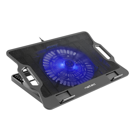 | Kitos savybės | The main distinguishing feature of the stand is efficient cooling thanks to the use of one illuminated 200 mm fan, which cools the laptop evenly on the entire surface of the stand; Natec Dipper also has a built-in hub with two USB 2.0 ports, which significantly increase its functionality. Thanks to this, you can easily connect additional accessories or chargers to the laptop |