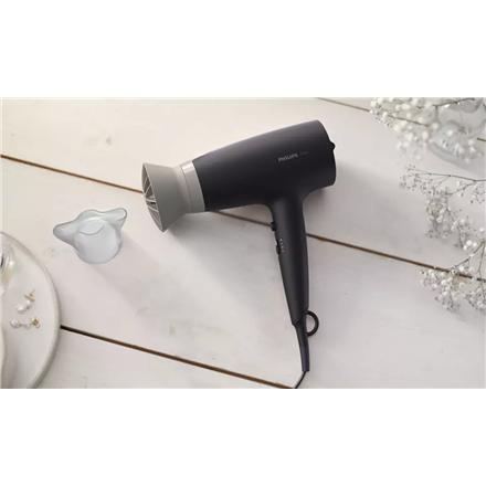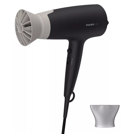 | Kitos savybės | he uniquely-designed ThermoProtect attachment powerfully mixes warm and cool air for everyday care. It drops the temperature by 15°C while still drying your hair quickly |