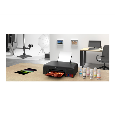 "PIXMA G550" yra aukštos kokybės nuotraukų spausdintojas, kurį gamina patyrę "Canon" specialistai. Gamintojo kodas - "CA". Tai yra spalvotas rašalinis spausdintojas, kuris palaiko A4 formato popieriaus dydį. Jo stiprusis jungiklis leidžia naudoti Wi-Fi funkciją, tad jums nereikės vargintis su laidiniais jungimais. Produktas yra juodos spalvos, todėl puikiai atrodys bet kokioje biuro aplinkoje.
