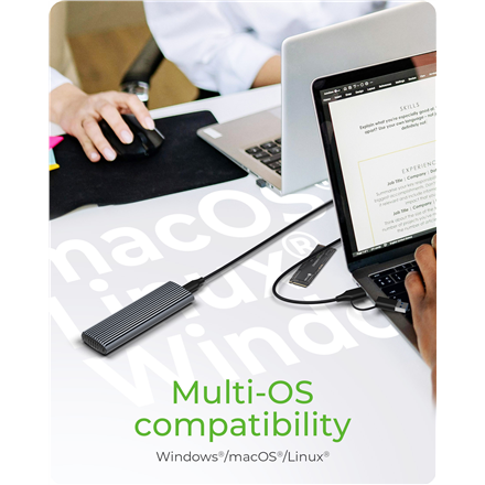| Gamintojo prekės serija | M.2 NVMe and SATA SSD Enclosure via USB Type-C |