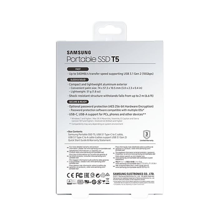 | Kitos savybės | up to 540 MB/s transfer speed supporting USB 3.1 Gen 2(10Gbps) |