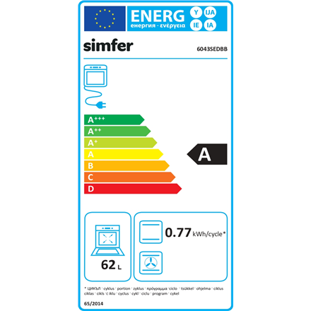 | Bendroji orkaitės(-čių) vidinė talpa | 62 l |