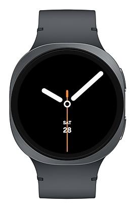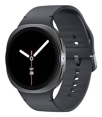 Samsung Galaxy Watch 8. Display diagonal: 3.81 cm (1.5"), Display technology: AMOLED, Display resolution: 480 x 480 pixels, Touchscreen. RAM capacity: 2000 MB, Flash memory: 32 GB. Wi-Fi. GPS (satellite). Battery capacity: 435 mAh. Weight: 34 g. Band colour: Graphite. Operating system installed: Wear OS
