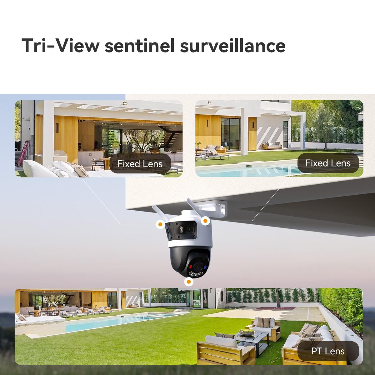 Summary Imou Cruiser Triple. Type: IP security camera, Placement supported: Outdoor, Connectivity technology: Wired & Wireless. Mounting type: Ceiling/wall, Product colour: Black, White, Form factor: Turret. Lens viewing angle, horizontal: 51°, Lens viewing angle, vertical: 28°, Lens viewing angle, diagonal: 60°. Sensor type: CMOS, Optical sensor size: 25.4 / 3.06 mm (1 / 3.06"). Digital zoom: 8x, Focal length range: 6 mm